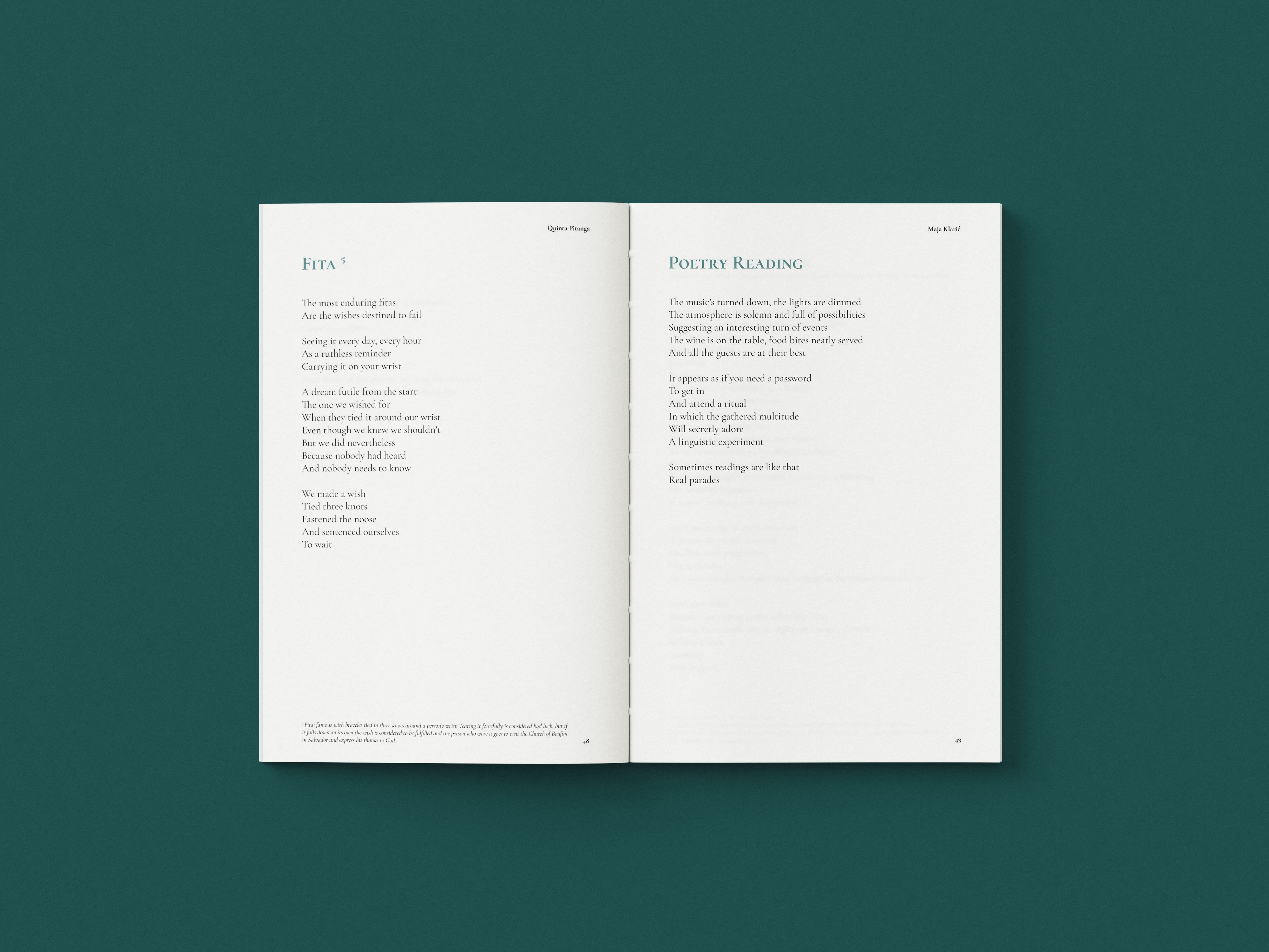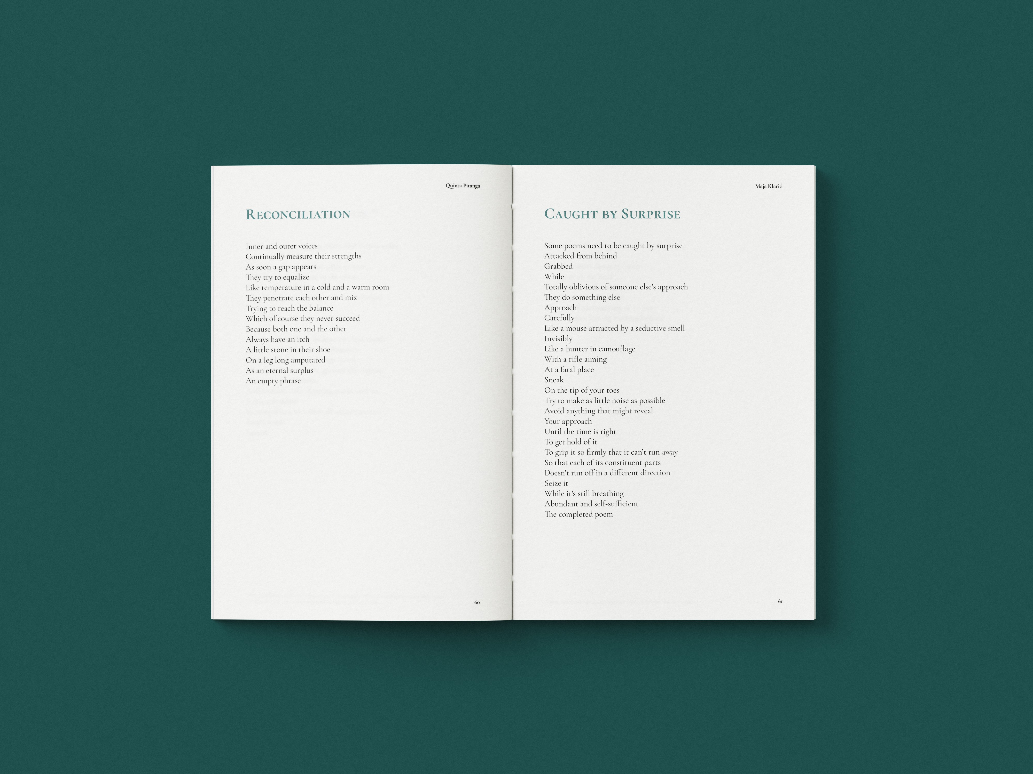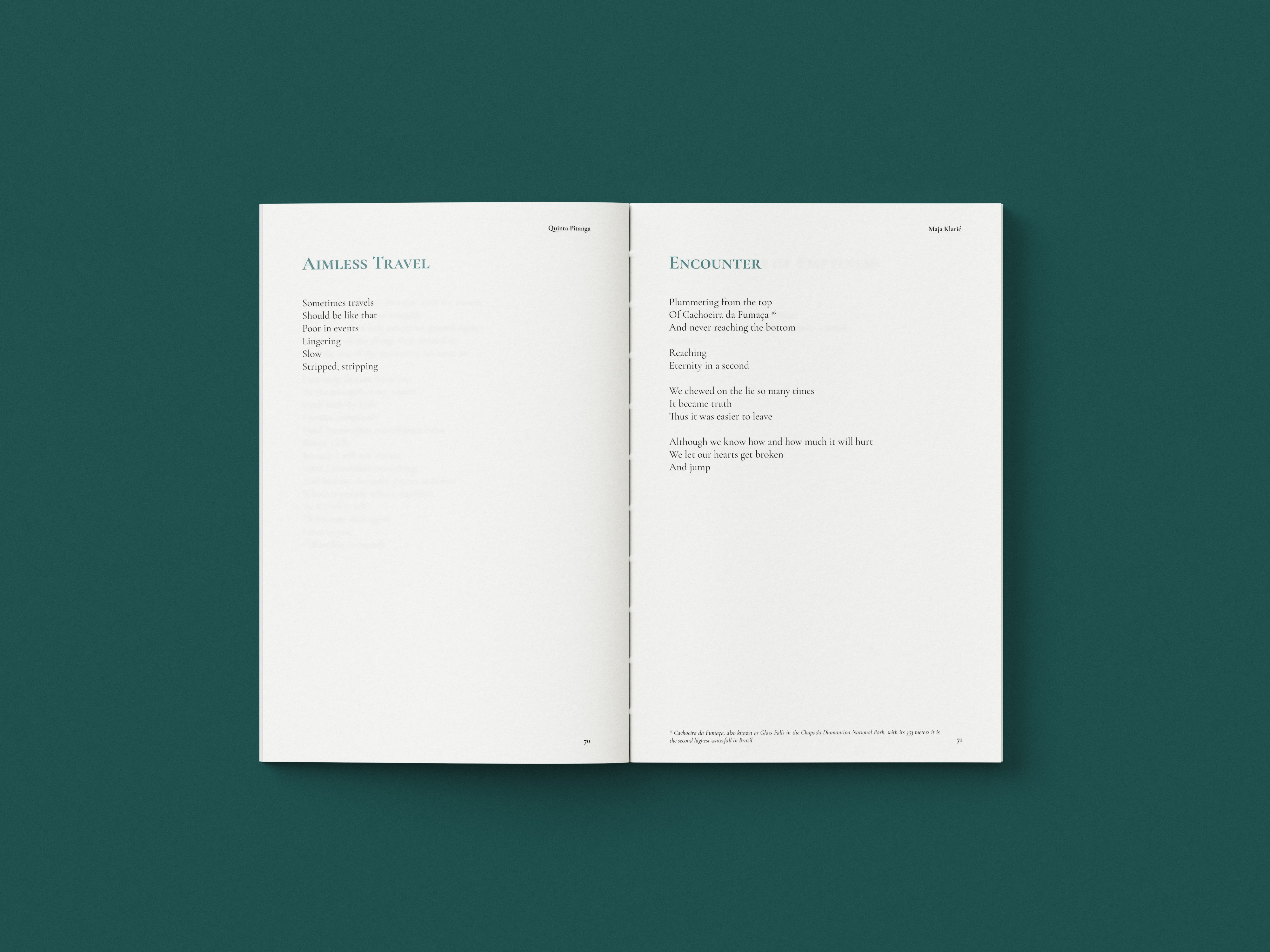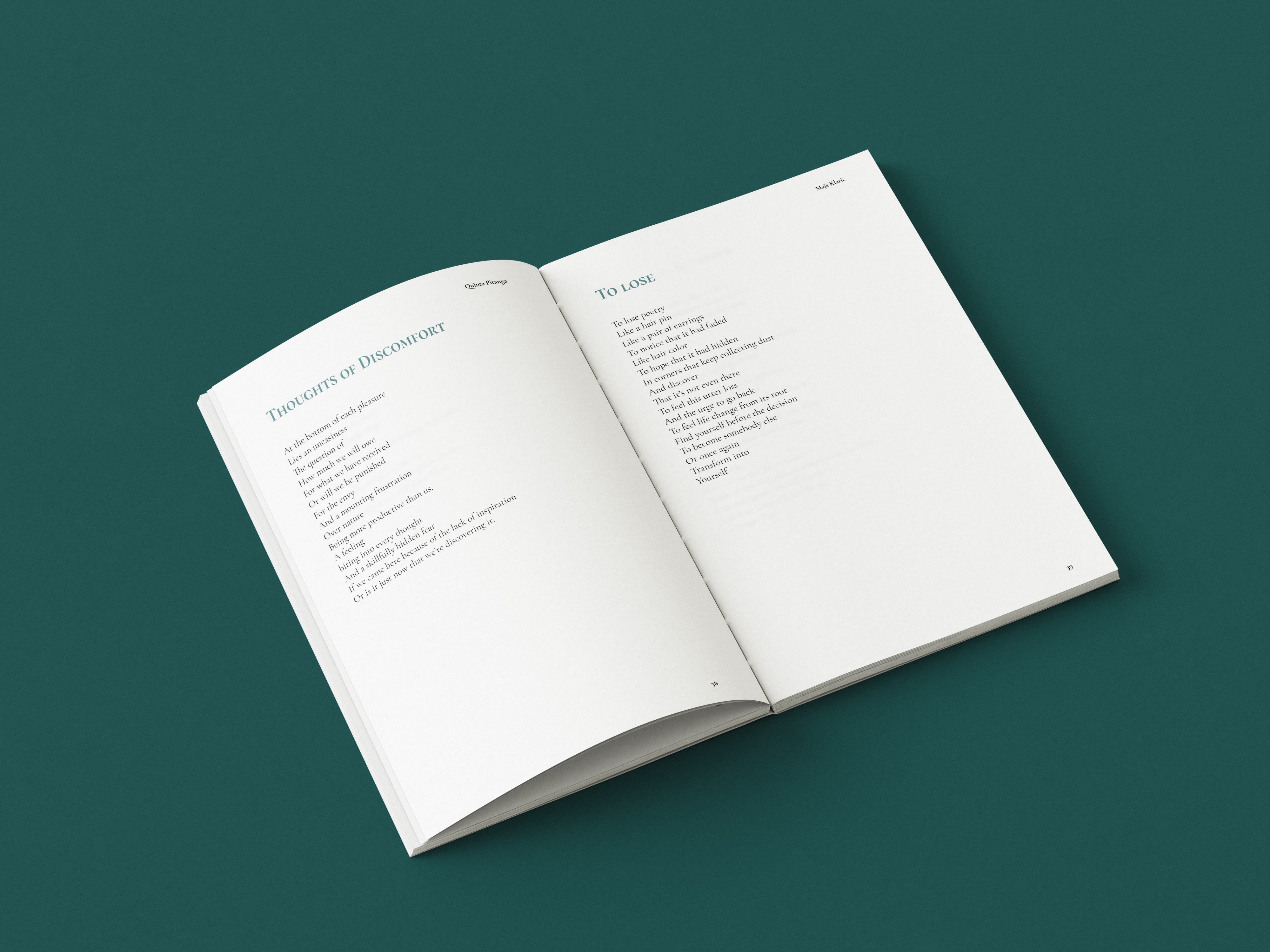 The client approached me to redesign her previously published book. We've decided the best approach is to move toward a cleaner, more minimal aesthetic, focusing on the white space to give each poem the clarity and presence it deserves. The final design features a refined, spacious layout that allows the poems to breathe, keeping their narrative and emotion at the center of focus.